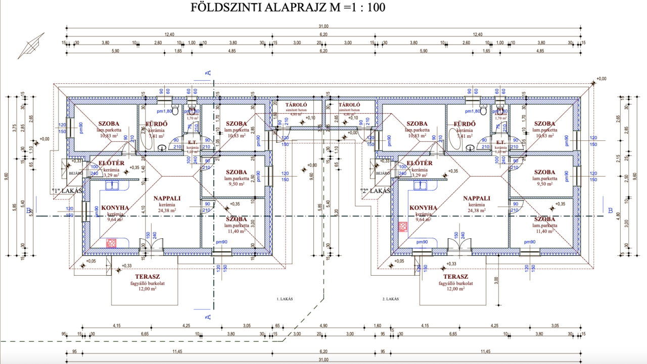 MÉRETEK, TÁJOLÁS, ELRENDEZÉS, AZ ALAPRAJZOKON.