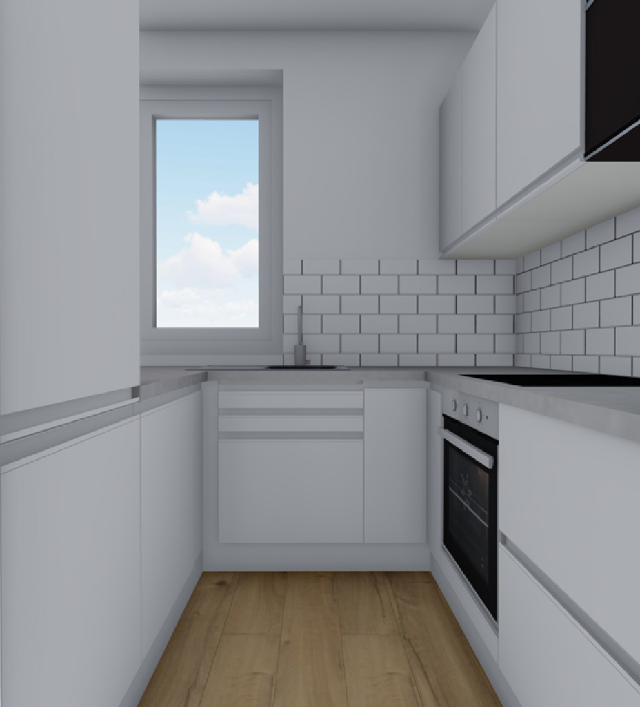 A belmagasság lehetővé teszi a lakóterület bővítését akár 20-30 m2-rel is. Újratervezéssel szabadon lehet kialakítani a lakás végleges elrendezését az egyedi ötletek és a saját igények testreszabásának figyelembevételével..