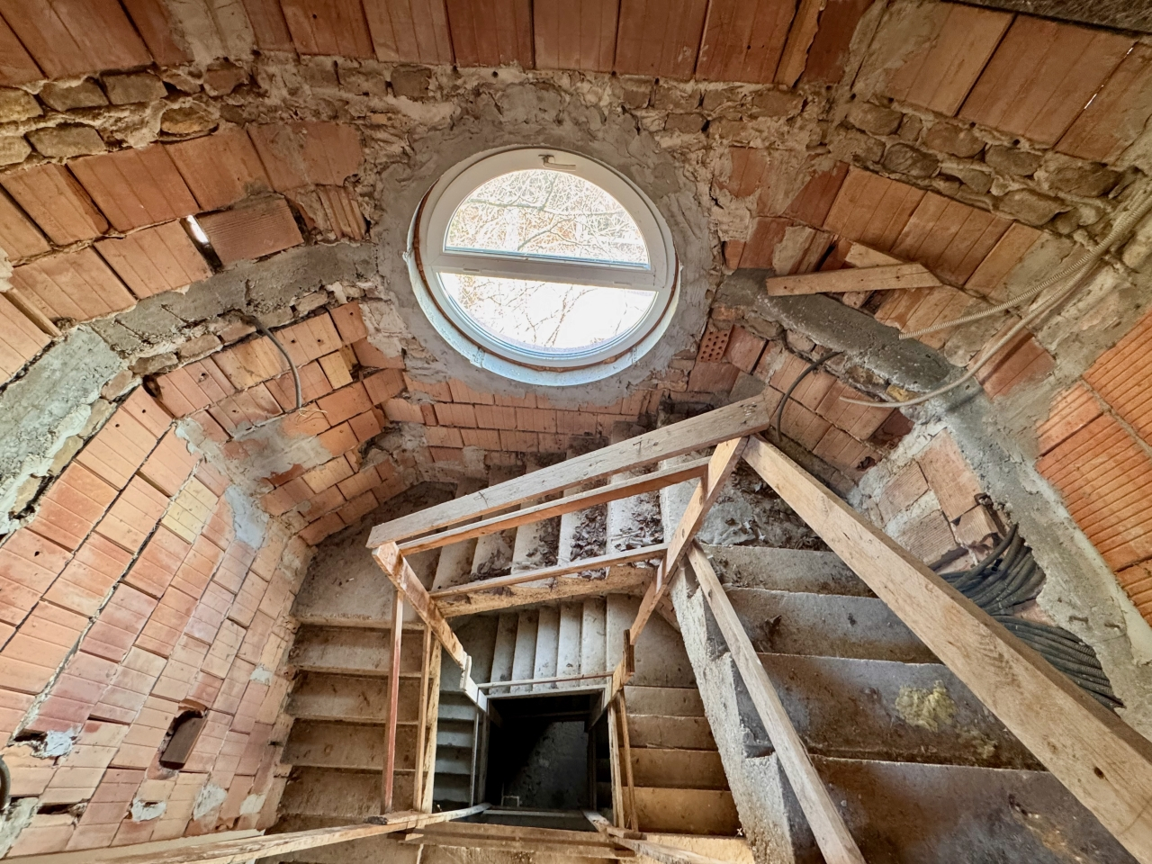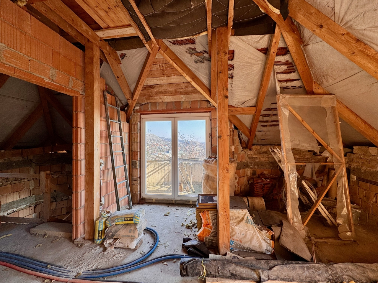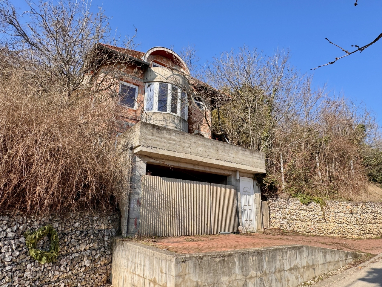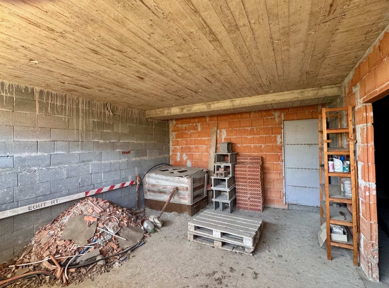 A telken neves építész által tervezett, 4 szintes, szerkezetkész (kb. 70%-ban) ház található.