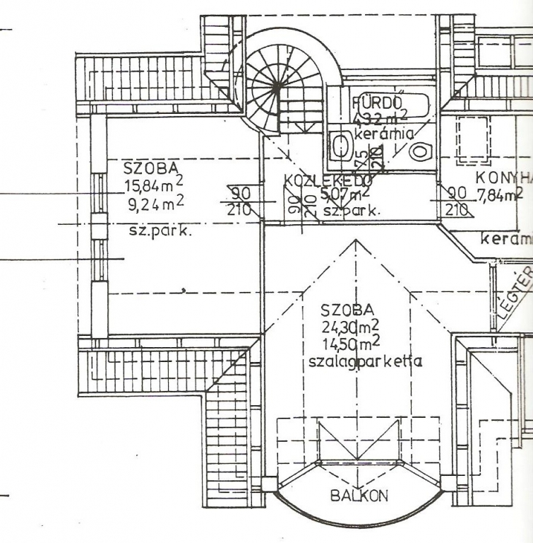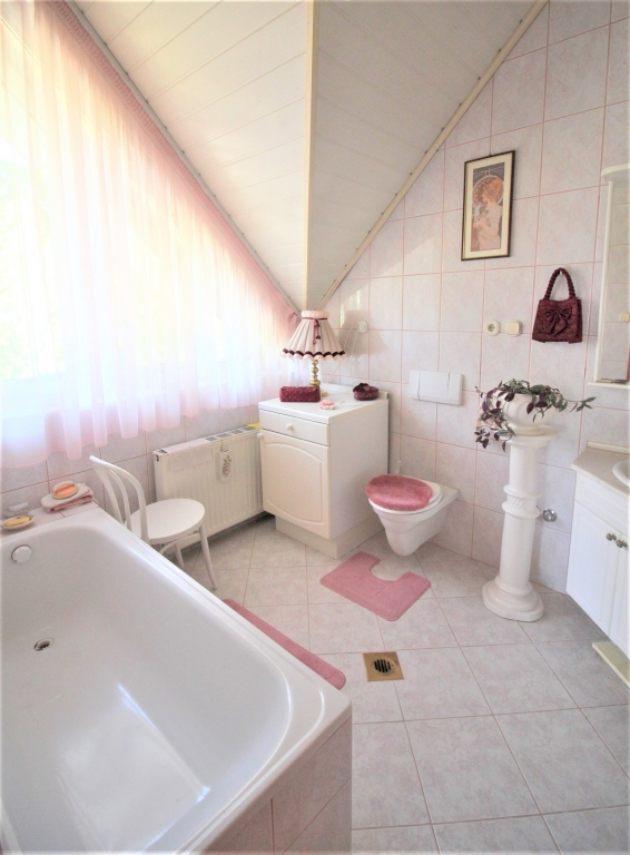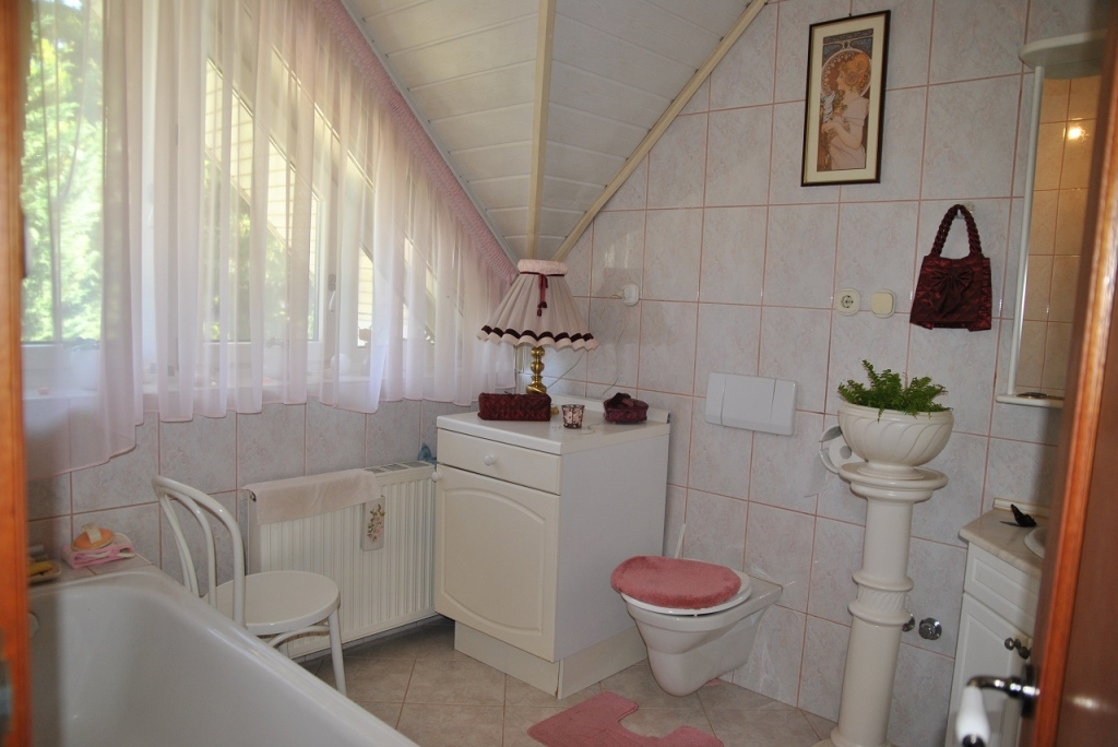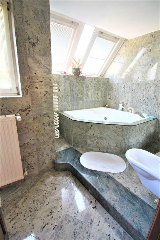 A lakóház alapterület: bruttó 300 m2, a legfelső szinten egy 60 m2-es KÜLÖNÁLLÓ lakás került kialakításra, amely a főbejárati előtérből külön lépcsőn közelíthető meg.