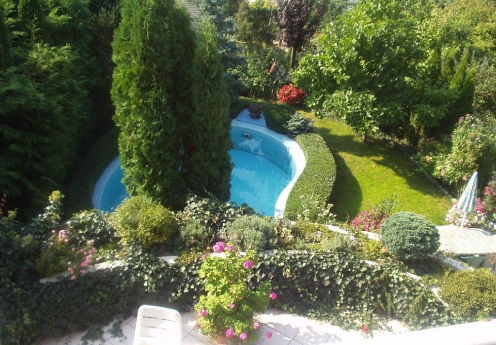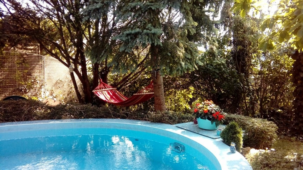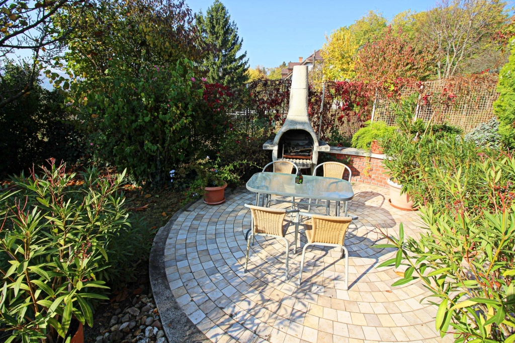 A kertben grillsütő, nyári konyha- tároló, napozó rész.