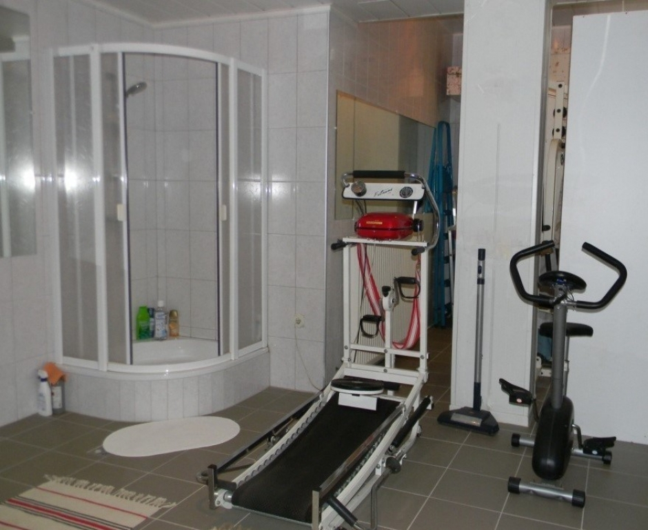 ALAGSOR: 2 állásos garázs mellett, fitness terem, 4 fős szauna, zuhanyzó, külön helyiségben a mosókonyha, gépészeti helység.
