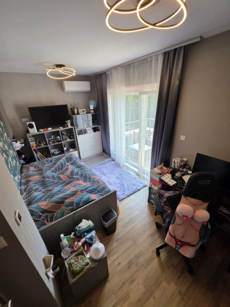- felső szint: 3 db szoba ( 3 x 12 m2 ), fürdőszoba (fürdőkád, wc, mosdó), erkély