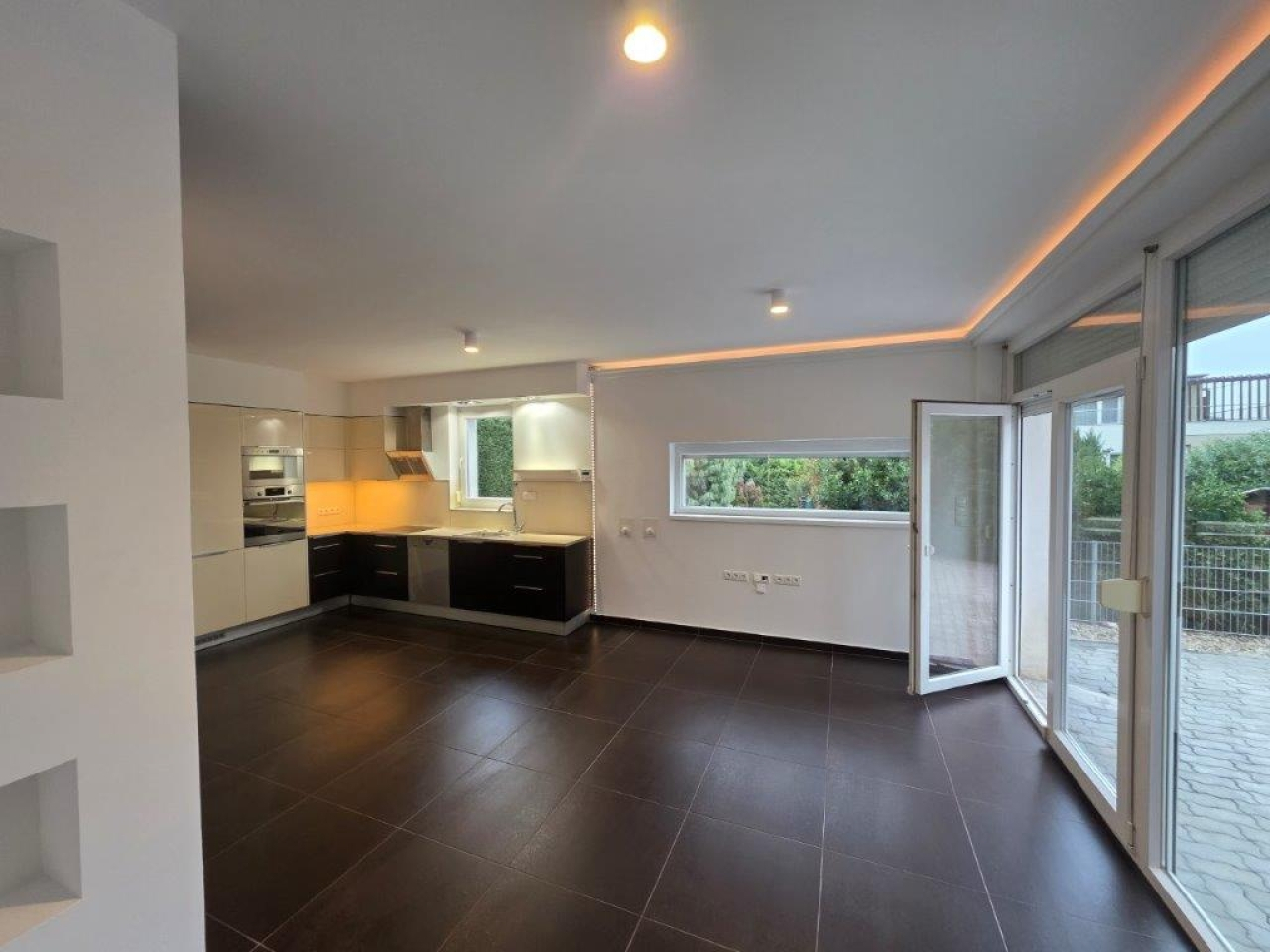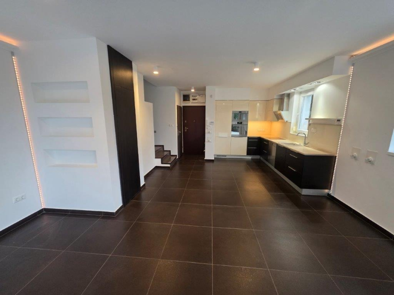 A lakás bútorozatlan ( kivéve beépített bútorok: konyhabútor + gépek, mosdópultok, split-klímák, lámpák stb.)
