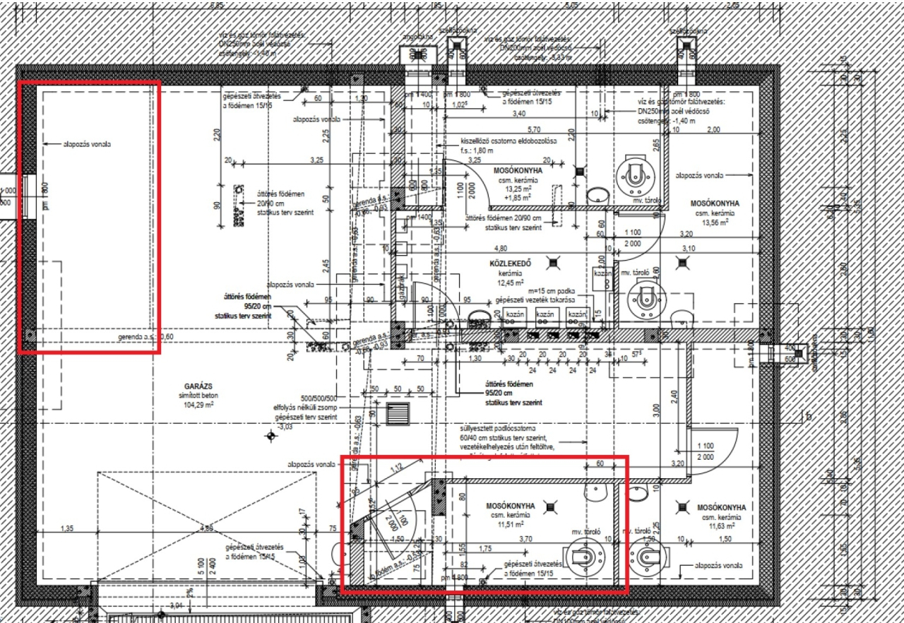 - 1 db. pinceszinten található mosókonyha-tároló ( 14 m2 )