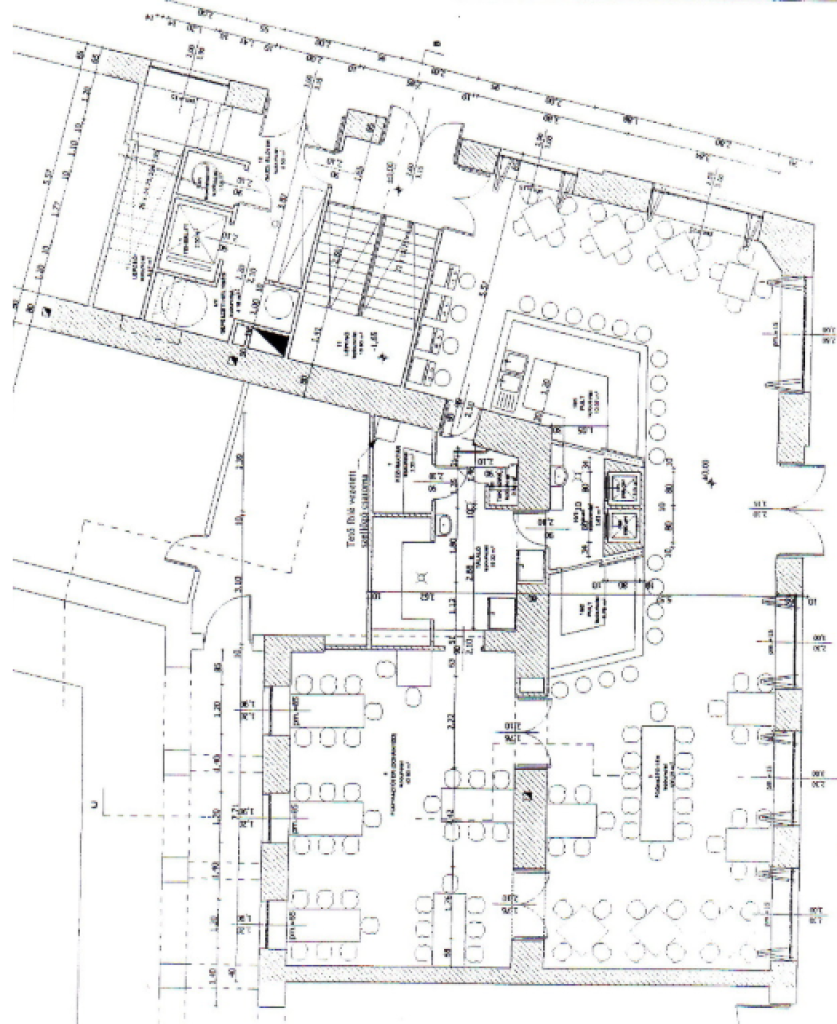 • Földszint: utcai frontos étterem 130 fő (3 helység) + 60 fő terasz (232 m2)