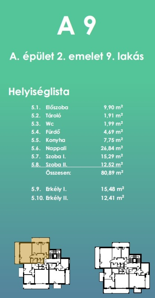 49, 54, 71, 80 nm2 méretű ingatlanok közül lehet választani. Földszinti lakások saját terasszal és kertrésszel míg az 1. és 2. emeleti lakások nagy teraszokkal rendelkeznek.