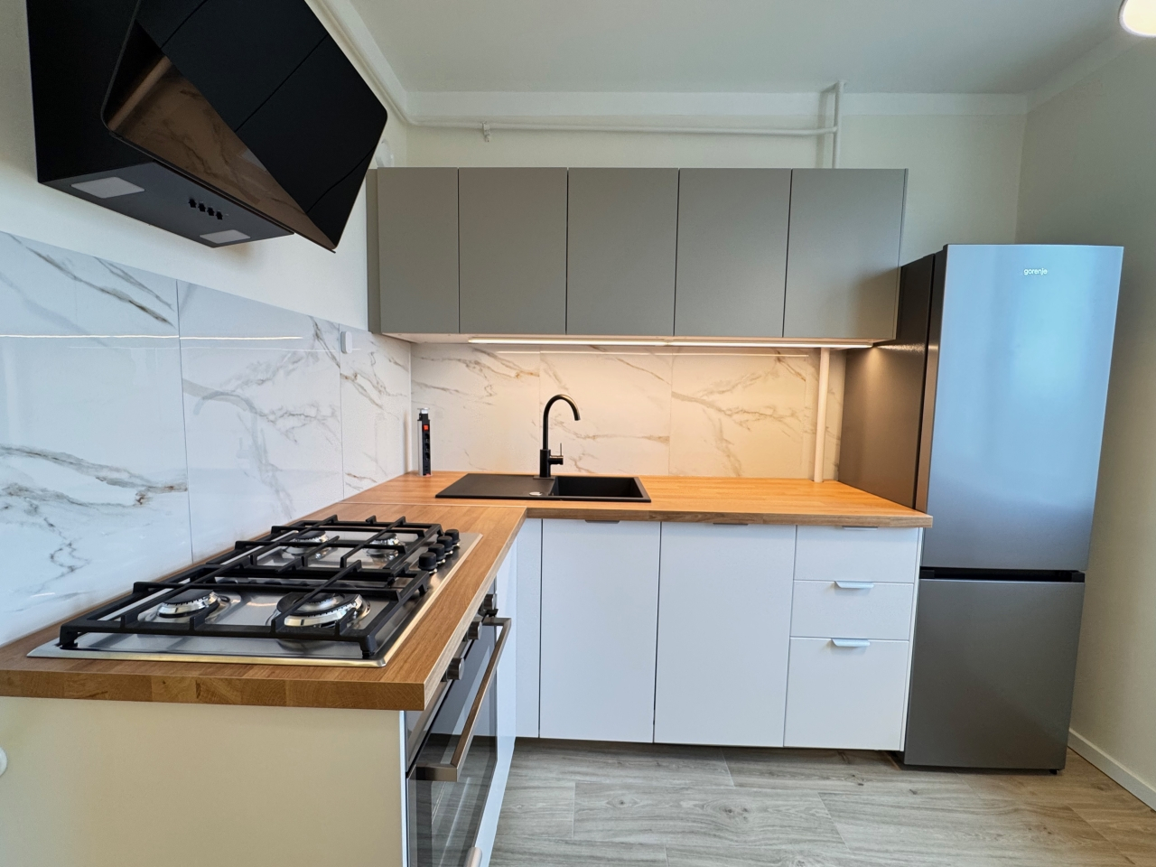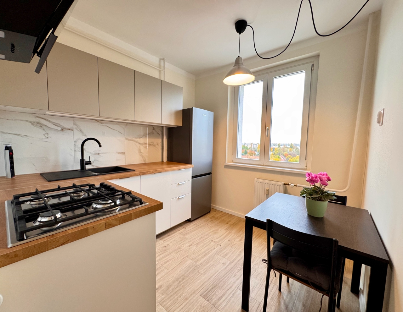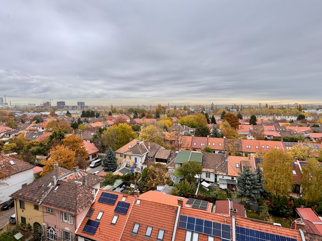 XI. kerület Albertfalván, a Fegyvernek utcában, egy teljesen felújított, IKEA bútorokkal berendezett, gépesített konyhával, gardróbszekrénnyel, 2 szobás VII. emeleti, családi házakra néző, panorámás lakás, minimum 1 évre kiadó!
