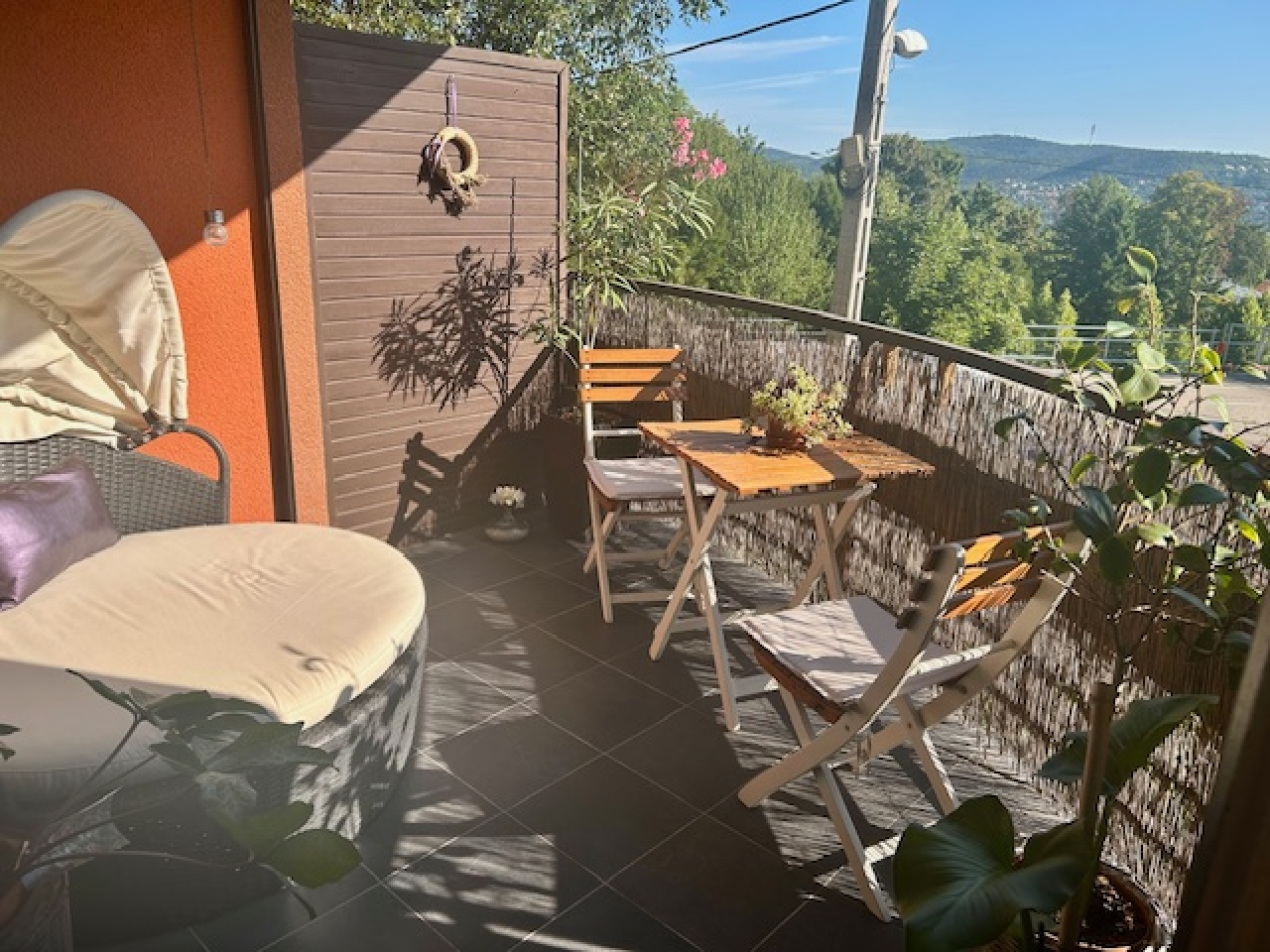 A lakás két erkélye ideális helyszín a reggeli kávéhoz vagy esti kikapcsolódáshoz, kilátással a parkosított környezetre és a városra.