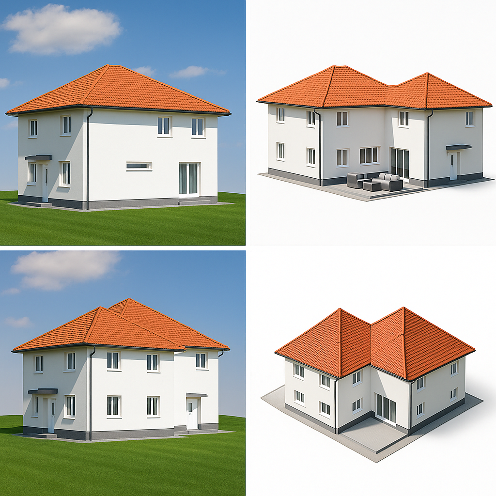 A két lakás CSAK A SARKÁNÁL KAPCSOLÓDIK, KÖZÖS FAL NÉLKÜL, így teljesen különálló otthonérzetet biztosítanak.
