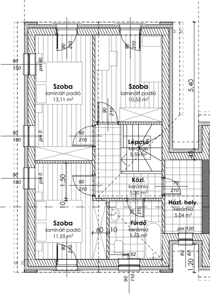 •	3 szoba 13.11 m2, 11.15 m2, 10.55 m2