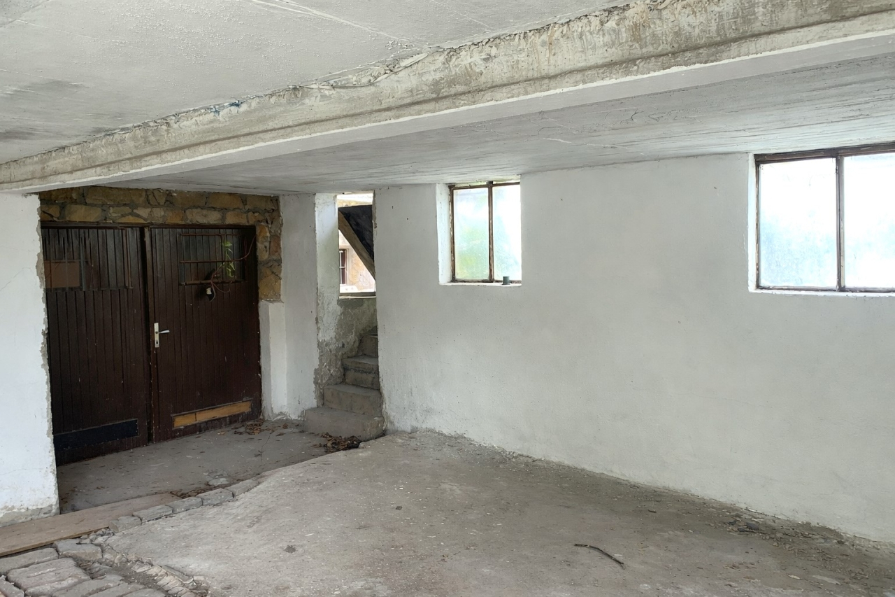 -a ház alatt 90 m2-es szuterén, melyben kazánház, tárolók és több állásos garázs található.