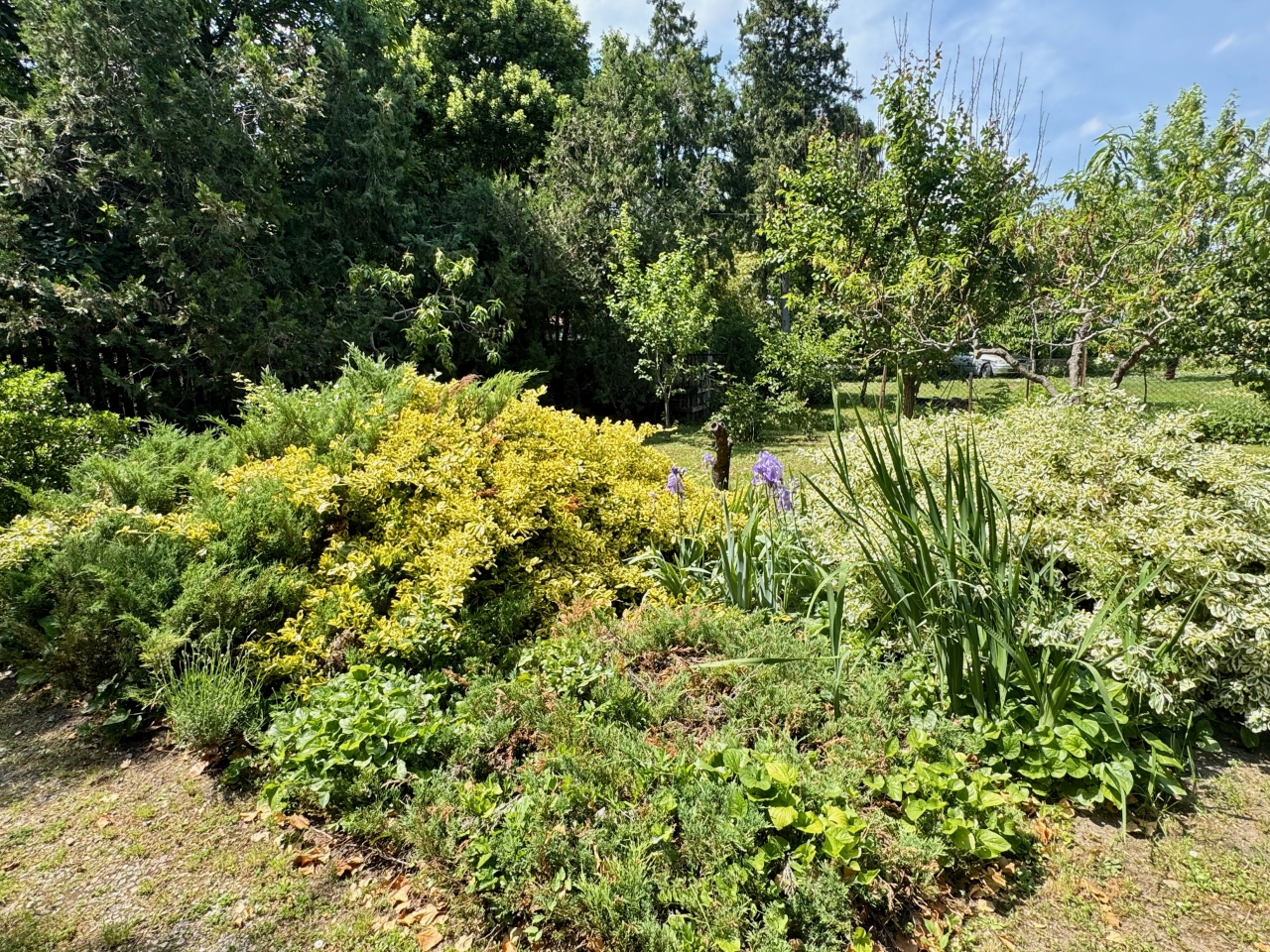 Az ingatlan egy 1051 m2-es, növényekkel beültetett telken, az utcafronttól elegendő távolságban helyezkedik el ahhoz, hogy ideális lehetőséget biztosítson a pihenésre és a nyugodt zöldövezeti életvitelhez.