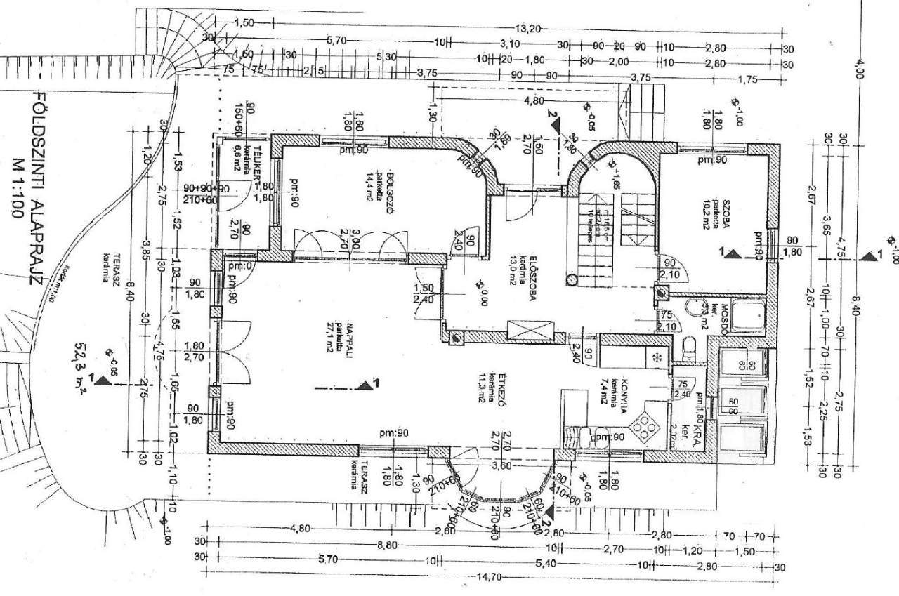 -a földszinten a nappaliból leválasztásra került egy dolgozószoba, amely az előtérből külön ajtón keresztül megközelíthető, igény szerint az eredeti állapot könnyen visszaalakítható, így a nappali alapterülete megnövelhető