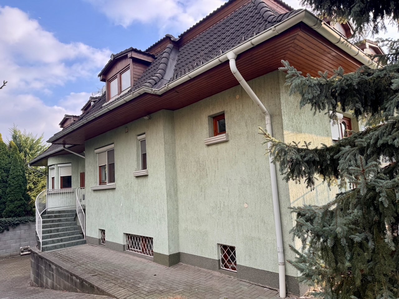 A hirdetésben jelzett ingatlan az utcáról nézve a belső(hátsó) épület rész.