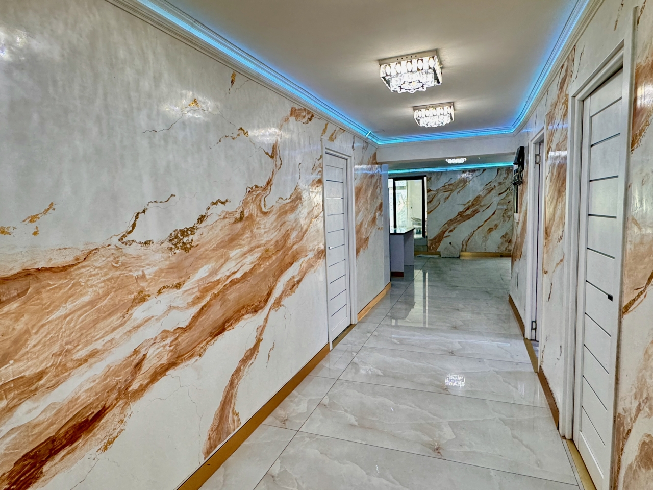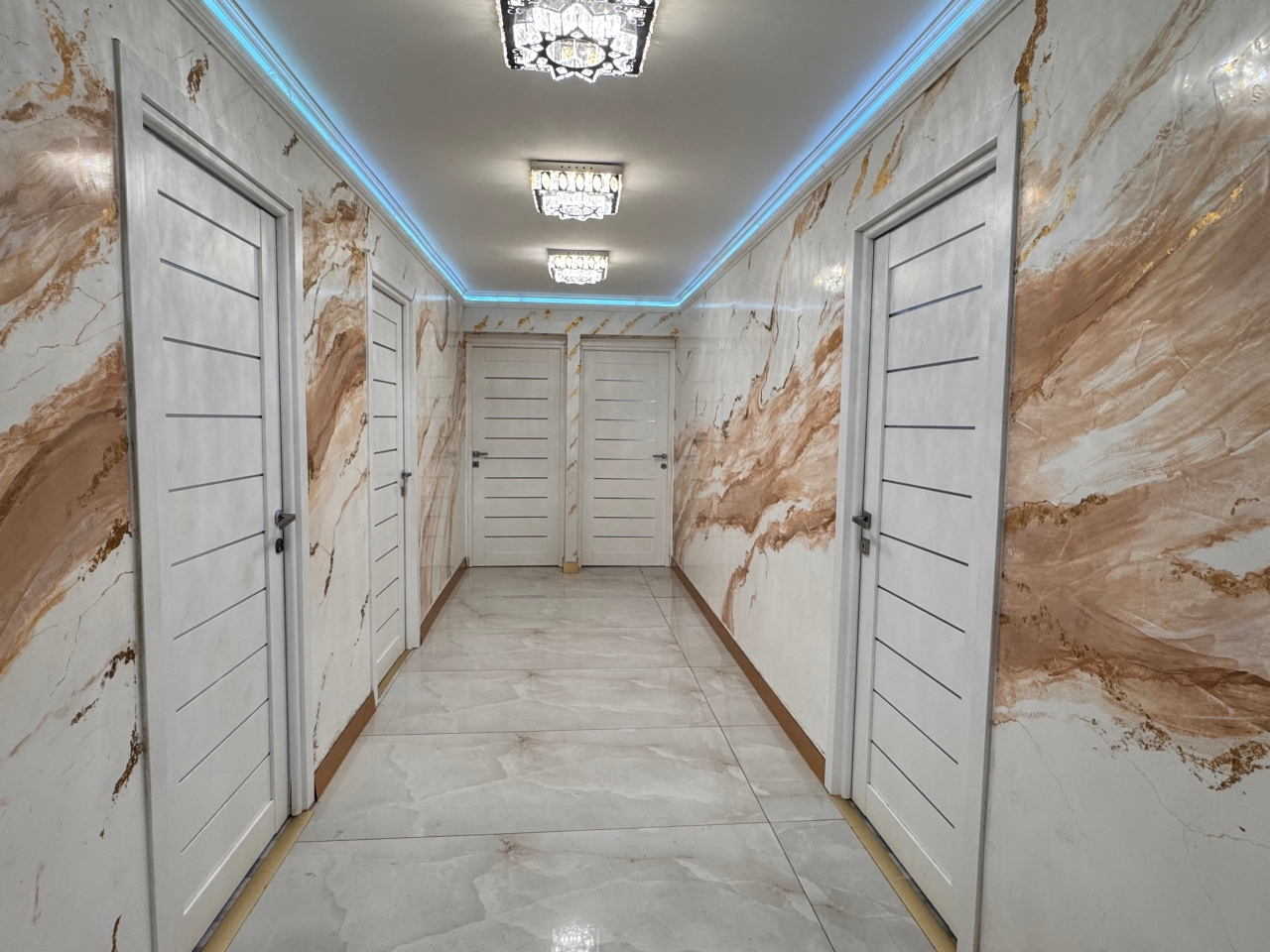 Széles folyosóról nyílnak a gyerek szobák, a nagy kádas fürdőszoba, és két nagy méretű hálószoba saját gardrób helyiségekkel.