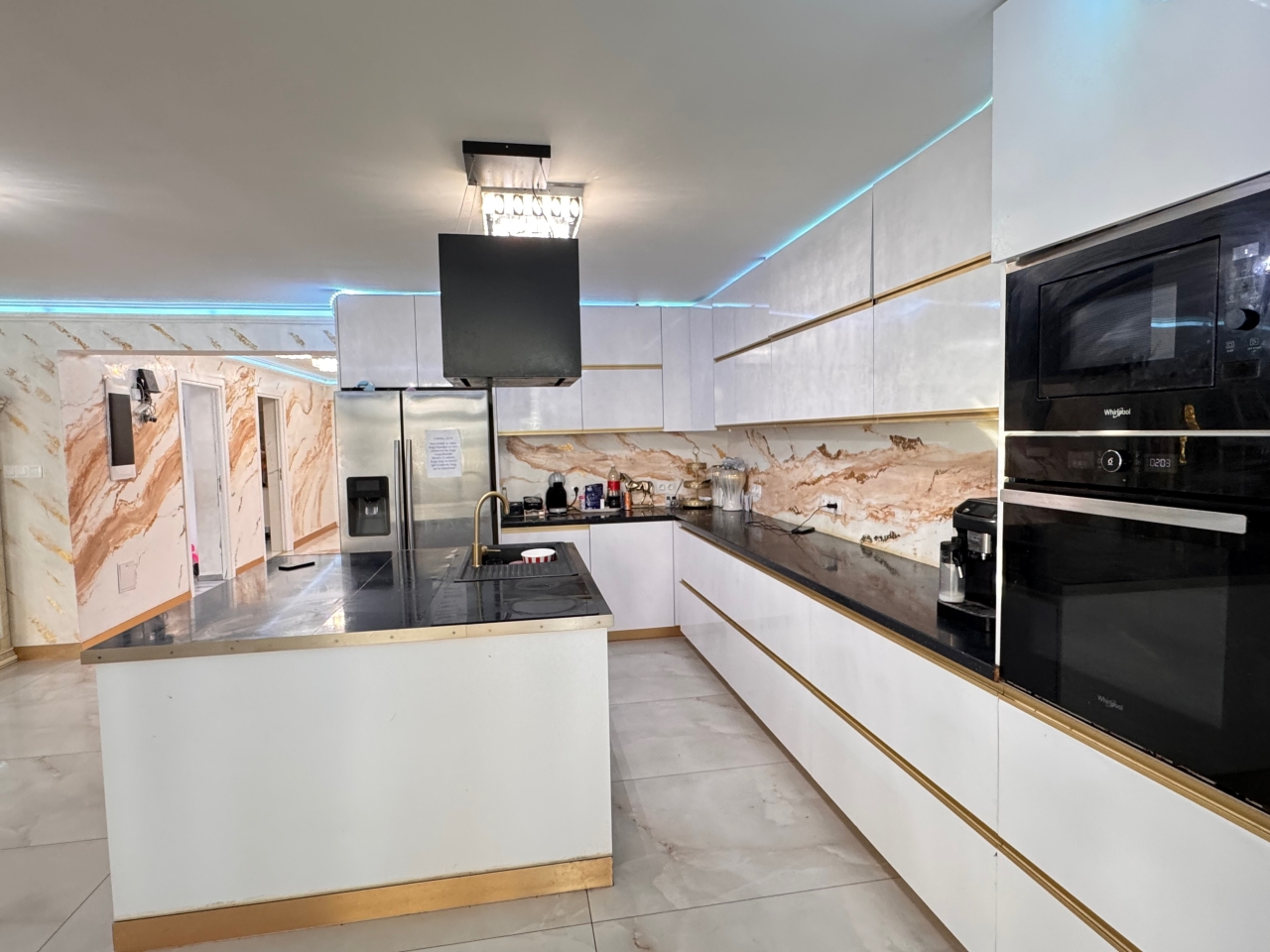 A ház alatti alsó szint 110 m2, ahol beépített konyha, kamra, kis szoba, zuhanyzós fürdőszoba WC-vel is kialakításra került, plusz egyéb tárolásra alkalmas terület is maradt.