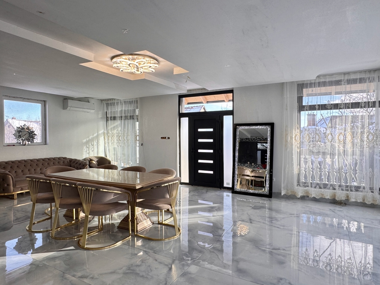 A ház ideális nagycsaládosoknak, de két generációnak is kényelmes tereket biztosít, a 214 m²-es lakótér, és az alsó szint helyiségei.