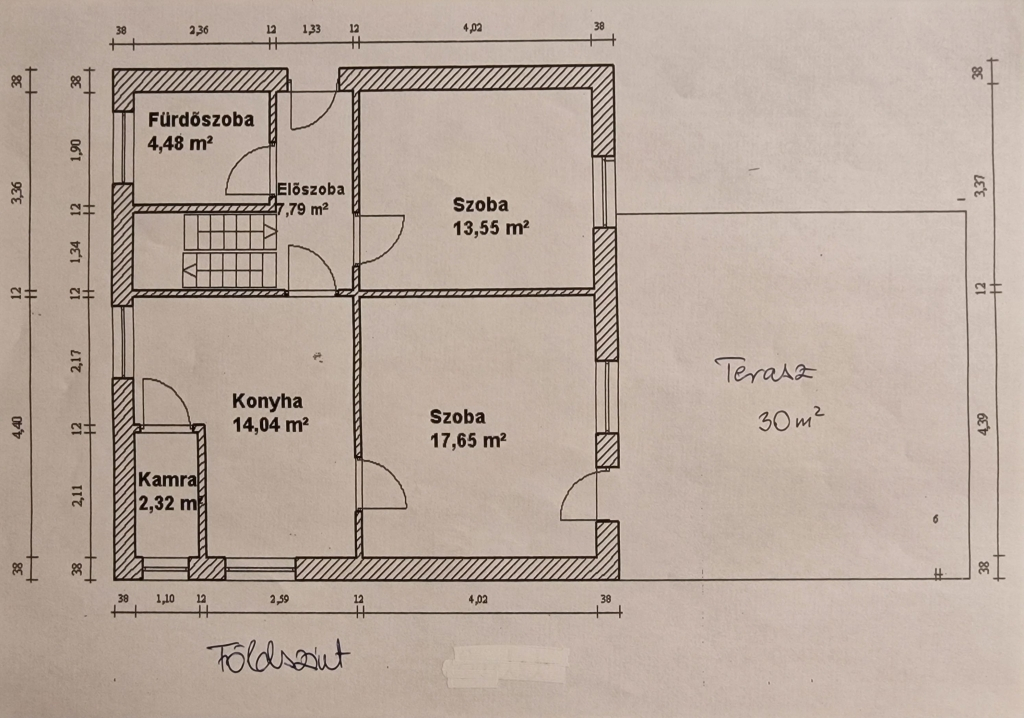 Erkély kb. 4 m² ; Terasz: 30 m².