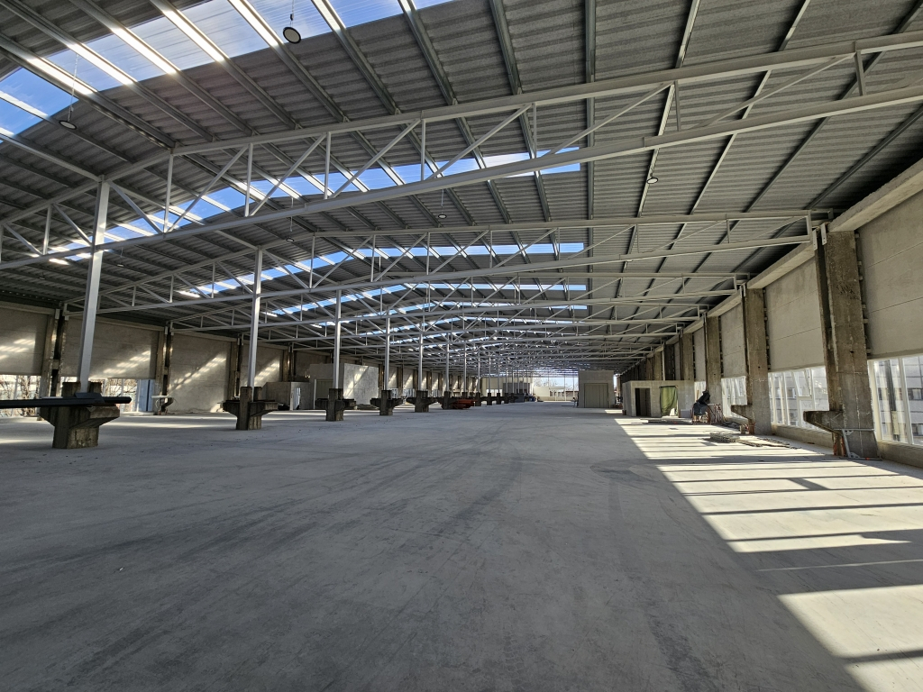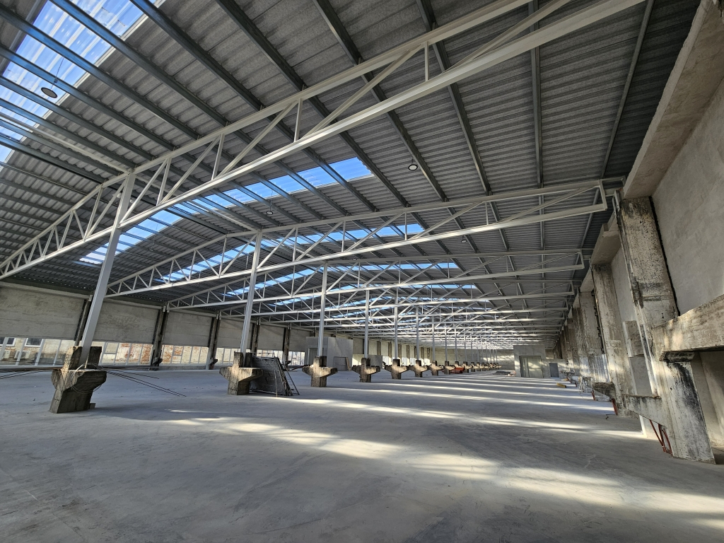 A tetőablakok és az oldal ablakok miatt a raktár nagyon világos. A raktár belmagassága 6-8 m.