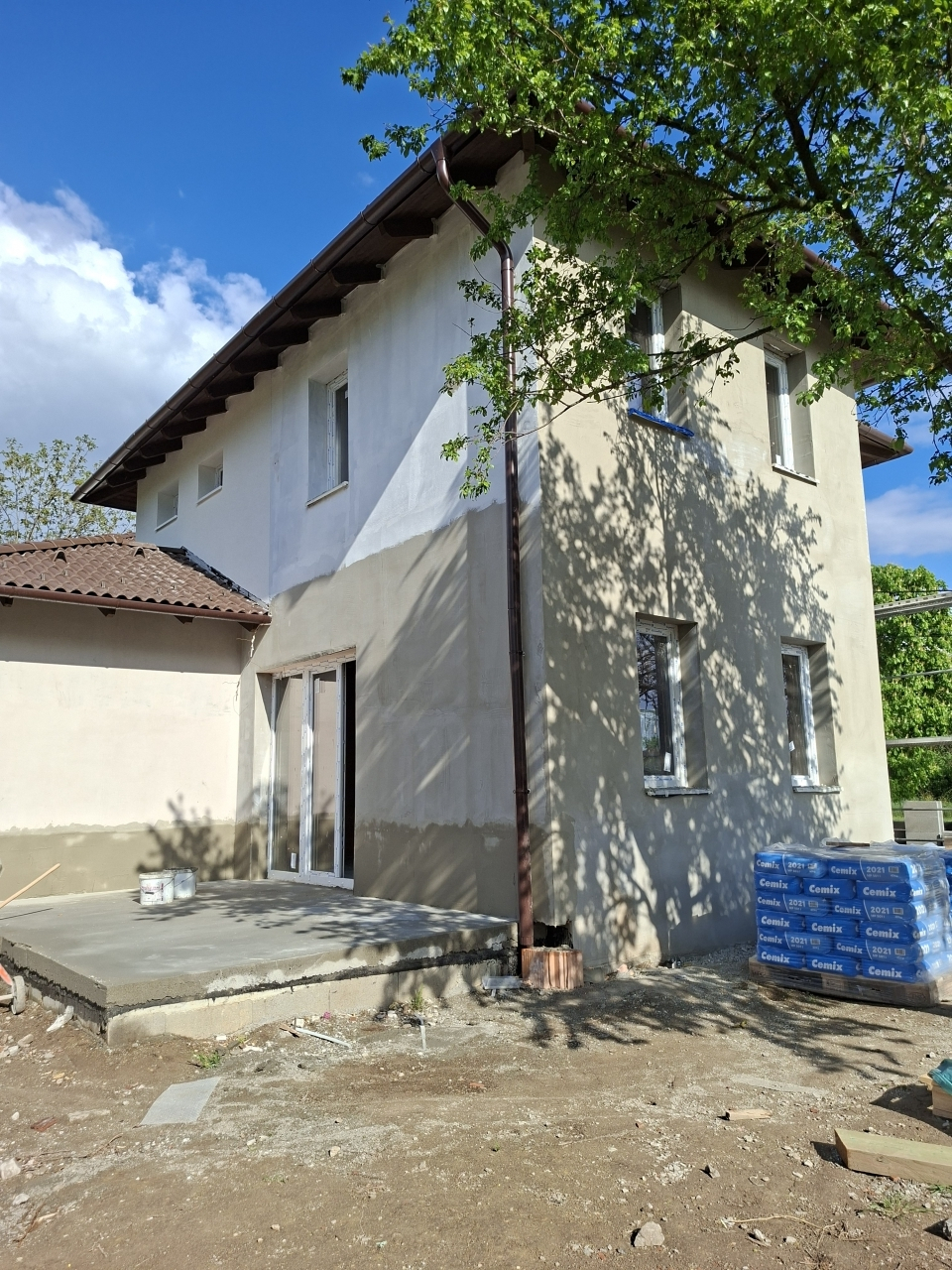 Átadás előtt, tereprendezésre kerül sor, építési törmelék elszállítása,