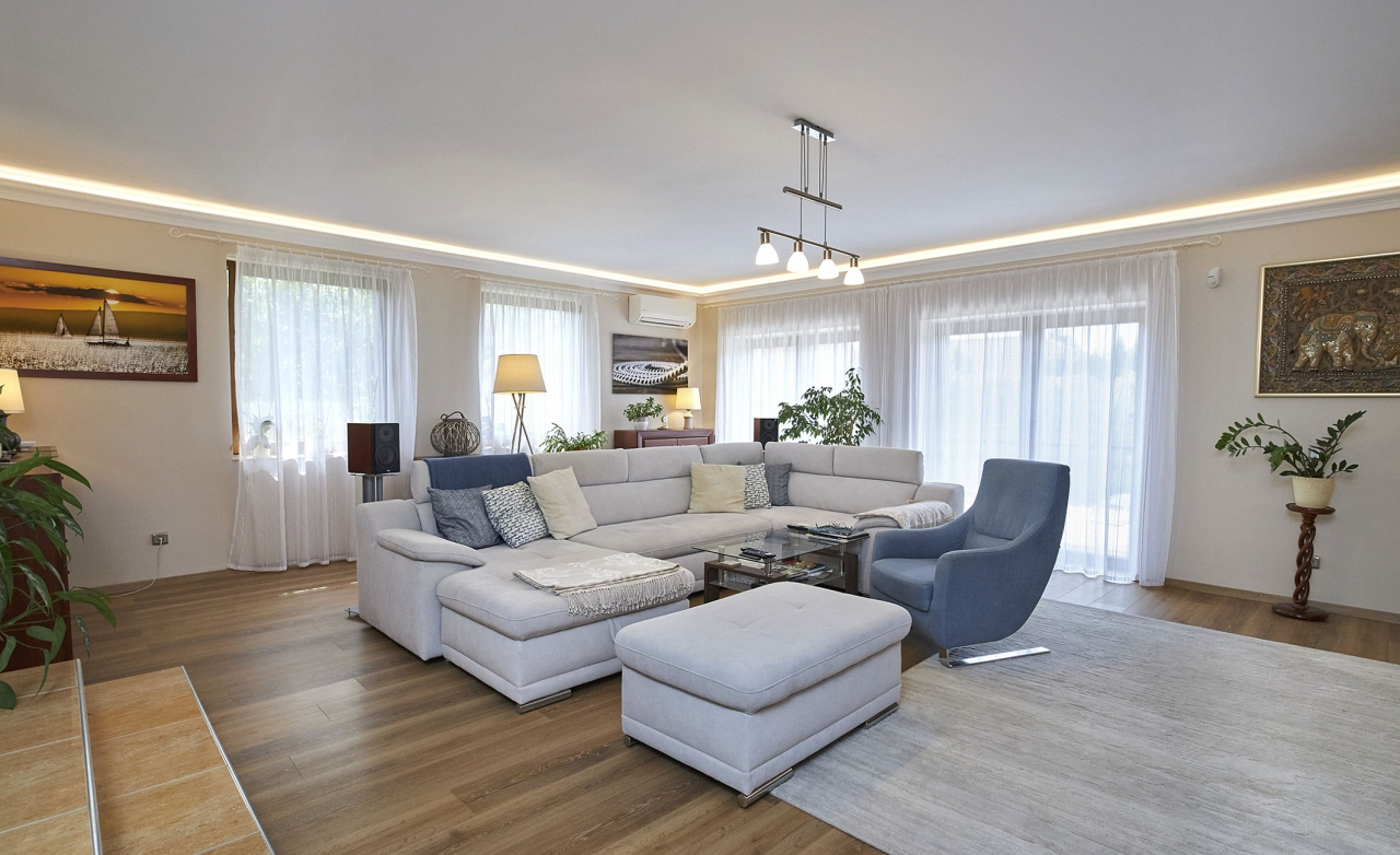 Gyenesdiáson, a Balatontól 500 m-re kínálok megvételre egy 1265m2-es parkosított telken lévő, teljeskörűen felújított, 300m2-es kétszintes, akár több generációs együttélésére is alkalmas családi házat.