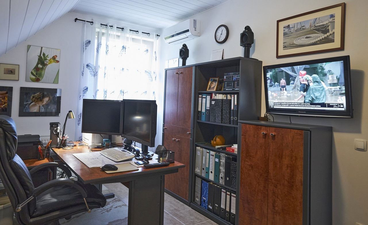 -garázson 5 KW-os napelem, a házra pedig napkollektorok kerültek felszerelésre, besegítve a medence fűtését és a készenléti melegvíz ellátását,