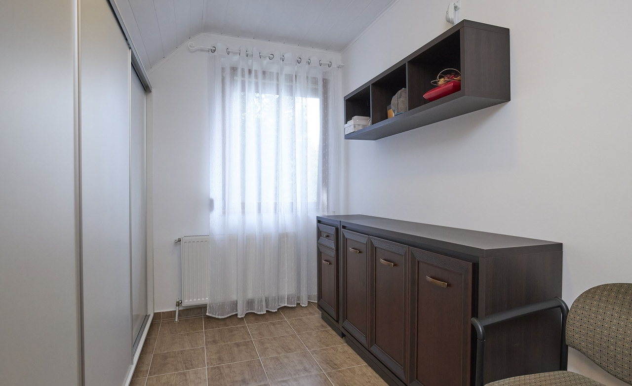 Az emeleti részen iroda, illetve vendégek fogadására alkalmas apartman lakás található, ami külön bejárattal is megközelíthető.