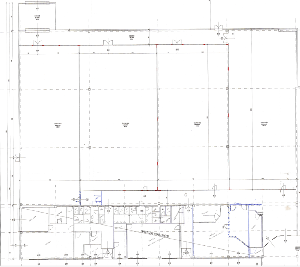 Az ingatlan főépülete egy 2780 m²-es, hűtött-fűtött csarnok, amely korszerű technikai paraméterekkel rendelkezik, és többféle ipari tevékenységre alkalmas. Az emeleten 340 m²-en négy különálló apartman került kialakításra, amelyek irodai vagy lakófunkcióra is használhatók. A 74 m²-es kazánház biztosítja az épület energiaellátását, míg a 3000 m²-es, betonozott, aszfaltozott parkoló lehetővé teszi a kamionok kényelmes fogadását és manőverezését.