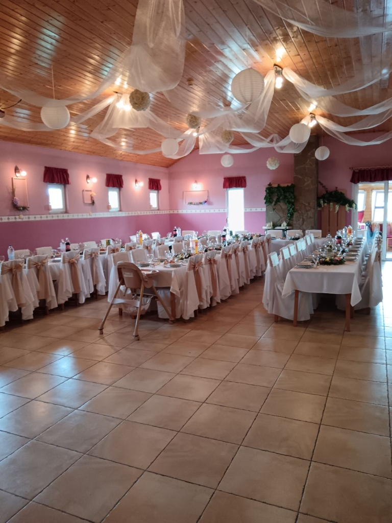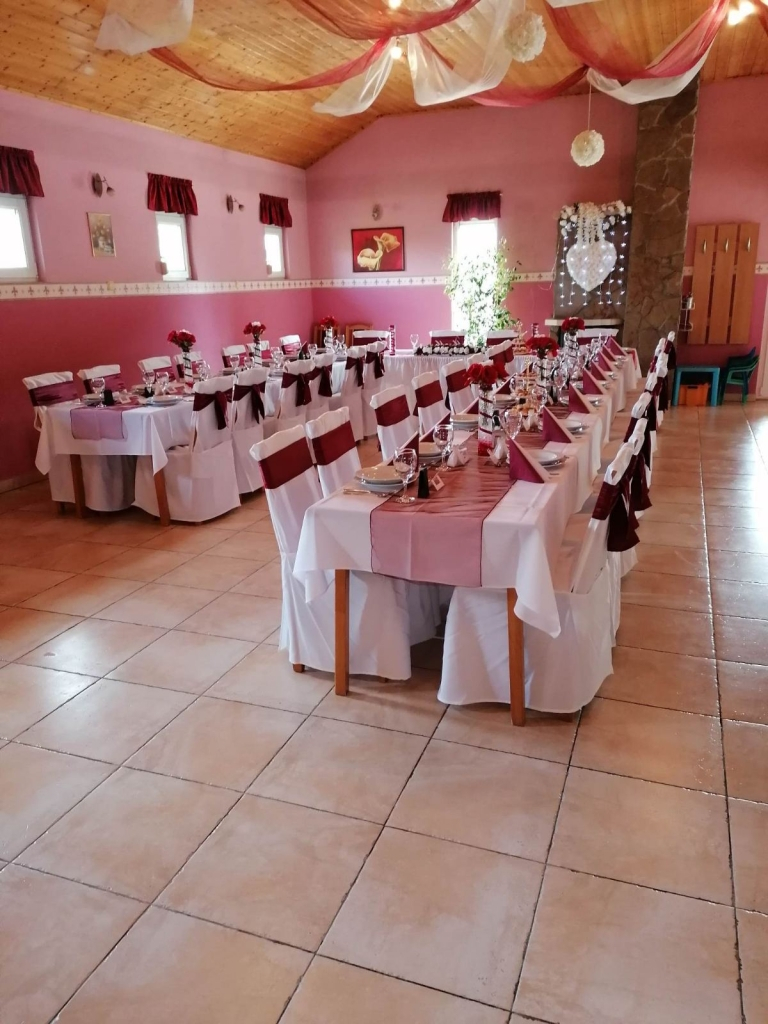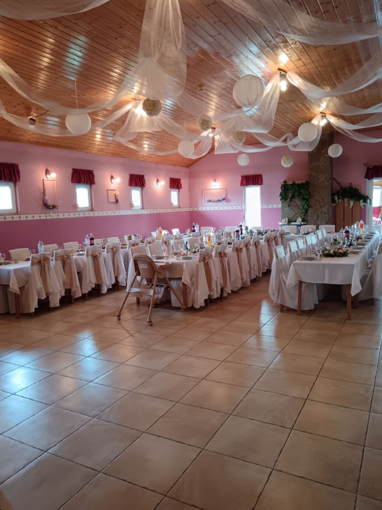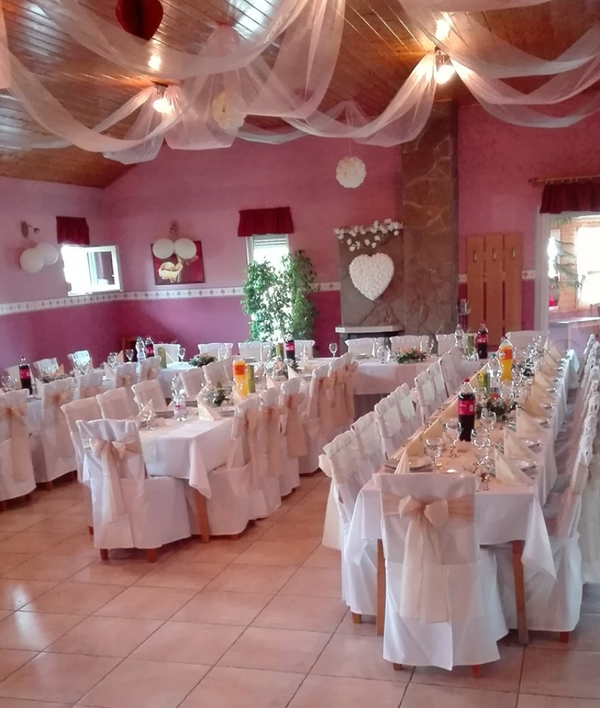 Beltérben egy nagyterem, valamint egy kisebb kb 20 főt befogadó külön helyiség kapott helyet, amely a vendégeket fogadni tudja. Kültéren pedig fedett terasz, amely tavasztól-őszig ugyancsak kiváló választás lehet összejöveteleknek.