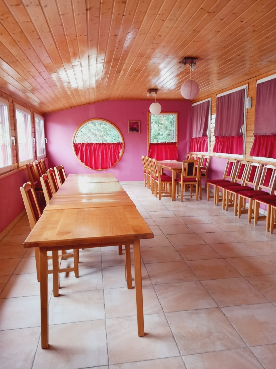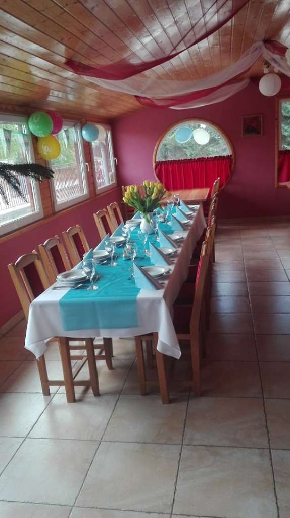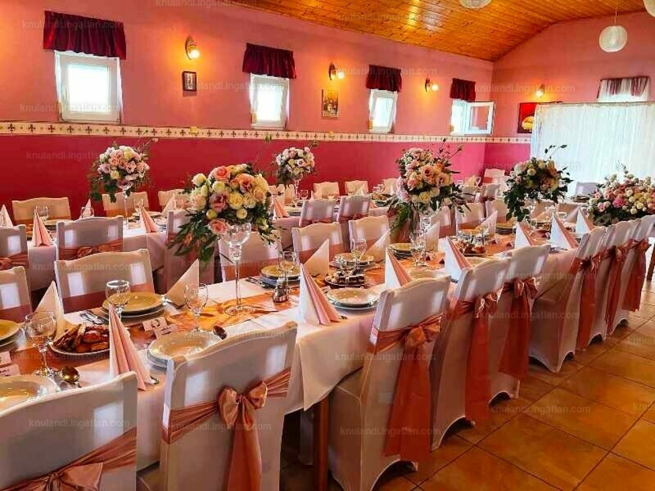 Beltérben egy nagyterem, valamint egy kisebb kb 20 főt befogadó külön helyiség kapott helyet, amely a vendégeket fogadni tudja. Kültéren pedig fedett terasz, amely tavasztól-őszig ugyancsak kiváló választás lehet összejöveteleknek.