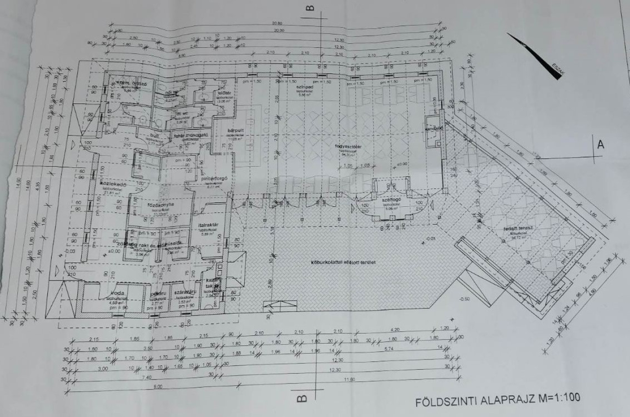 A kiszolgálóhelyiségek elrendezését a mellékelt alaprajz mutatja.