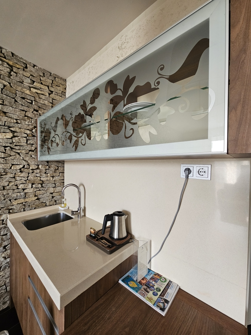 Az apartman lakások magas szintű kialakítását és berendezését egy neves Design stúdió végezte. A kialakított belső enteriőr művészien tükrözi Tihany építészeti és hangulati világát és szervesen kapcsolódik az apartmanból látható Balaton táj látványához.