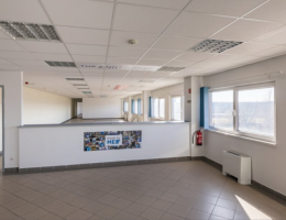 A logisztikai központ földszintjén nagy belmagasságú fűthető raktár található, amely belmagassága 10,5 m, könnyen állványozható.