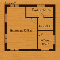 Emelet (41 m² + 9 m² erkély): 2 szoba, fürdőszoba (3 szoba könnyen kialakítható)