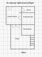 konyha+étkező, kamra, fürdőszoba+WC, galériázott szoba.