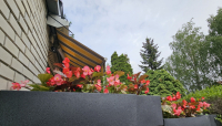 Az 550 m2-es díszkert gazdag növényzettel virágok -növények és cserjék változatos telepítésével lett kialakítva, valamint automata öntözőrendszerrel lett ellátva.