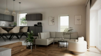 A földszint rész elosztása szerint: előszoba, gardrób, nappali-konyha-étkező, 2 db. fél szoba, zuhanyzó-WC-s fürdőszobából áll.