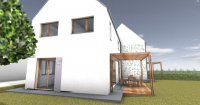 A ház felépítése: földszint + teljes értékű emelet + 8 m² beépített fűthető padlástér (amely egy helytakarékos lépcsőn keresztül közelíthető meg).