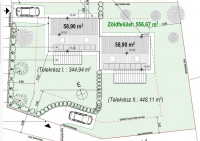 Az ikerházhoz 1 db. kocsibeállási lehetőség tartozik ( igény szerint további beállási lehetőséggel is bővíthető ), a hozzá tartozó kizárólagos használatú telekrész 344,94 m².
