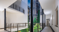 A lépcsőházak fedett, átriumos megoldásának köszönhetően a nem utcafronti irodák is rengeteg természetes napfényt kapnak.