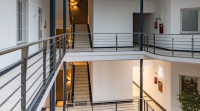 A lépcsőházak fedett, átriumos megoldásának köszönhetően a nem utcafronti irodák is rengeteg természetes napfényt kapnak.