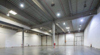A logisztikai központ földszintjén nagy belmagasságú fűthető raktár található, amely belmagassága 10,5 m, könnyen állványozható.