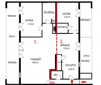 KÉT KÜLÖN HELYRAJZI SZÁMÚ, jelenleg egybenyitott de könnyen VISSZAÁLLÍTHATÓ két önálló lakásból álló ingatlan eladó.