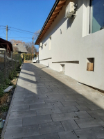A kertben több autó számára térkövezett felszíni beálló biztosított.