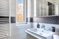 A fürdőszobában és a WC-ben hőszivattyús padlófűtés és elektromos törölközőszárító gondoskodik a komfortérzetről.